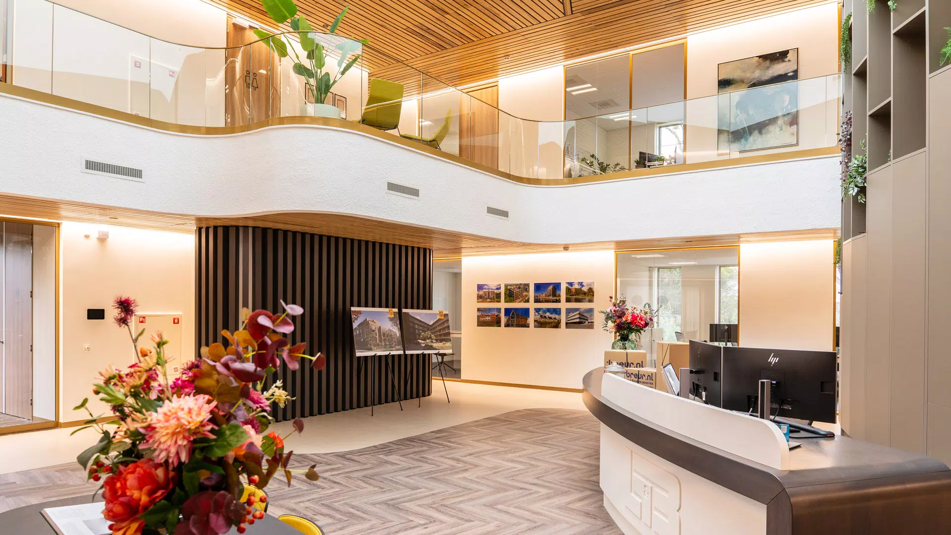 Voor de nieuwbouw van het kantoor van De Langen & van den Berg Vastgoed B.V. realiseerde SPARQ Balustrades een eyecatcher: de U-Line Top balustrade in een unieke goudkleur, uitgevoerd met elegante gebogen elementen.
